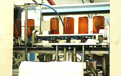 手作業でボトルのバリを取り除き、同時に外観検品する。