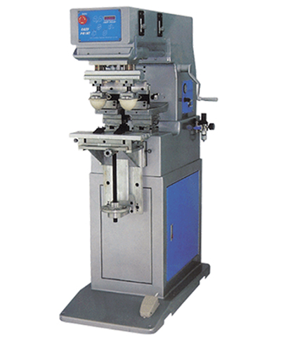 インクをシリコンパッドに転写し、容器にスタンプのように押し付けて印刷する方法。平面版が対応出来ない曲面に対して、ロゴやワンポイントの印刷をすることが可能です。